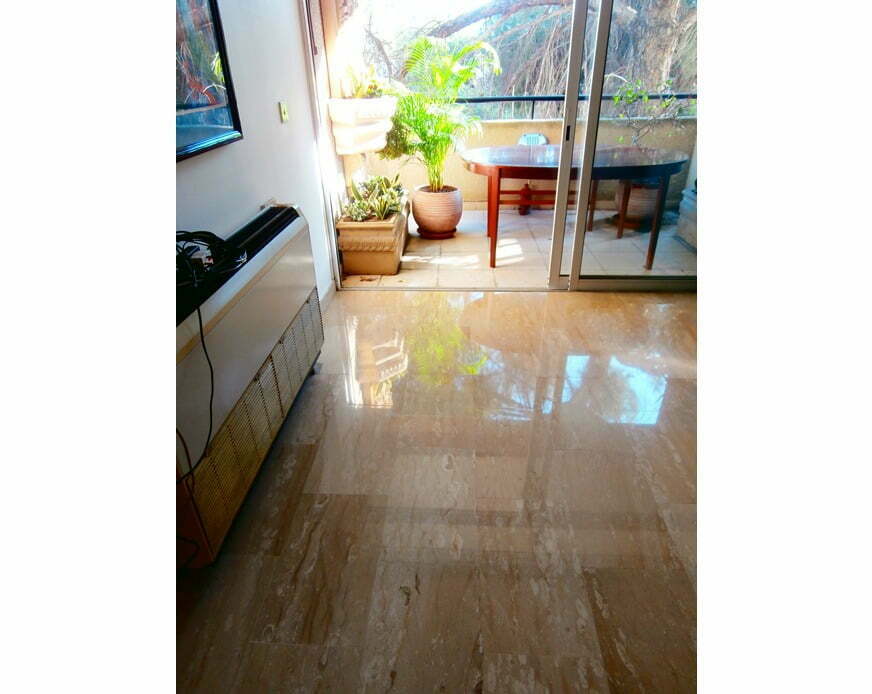 Not, however, after the processing done by our professional crew. With our specialised mechanical polishing restoration method (no waxes or chemicals), Perlato has regained its lost shine. Acid stains and abrasions were eliminated. The marble was made new as if it was newly installed and not 25 years ago. The polishing was done quickly, dust- and dirt-free.