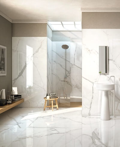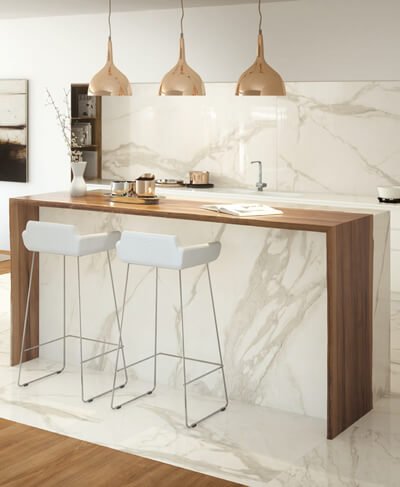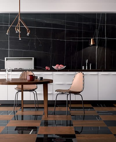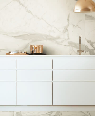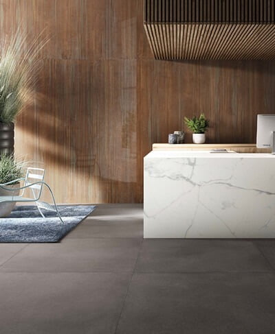 The luxurious collection of innovative Porcelain stoneware surfaces is inspired by the world’s most famous and coveted marbles, metallic and contemporary modern surfaces and is created using cutting-edge technology.