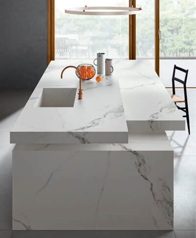 These modern surfaces are the latest innovation in the production of high quality porcelain stoneware, specialized to withstand high stress as countertops, in slabs of huge dimensions (160x320cm).
