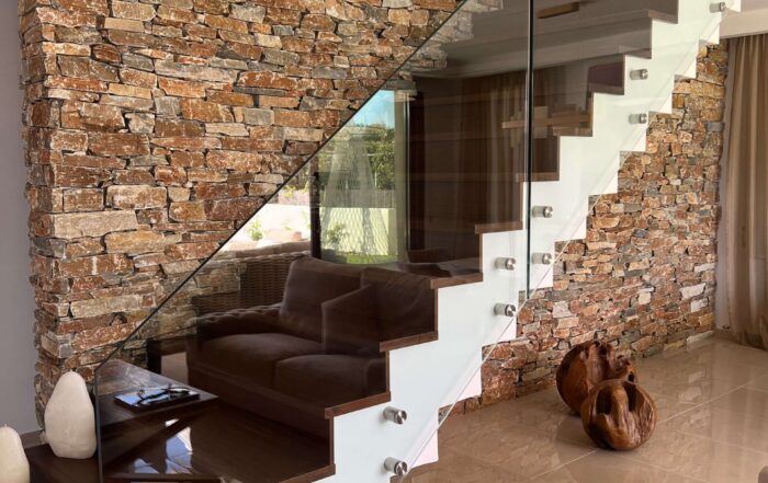 Stone-built stones with a rectangular shape and 3-5cm thickness give the feeling of built stone without the time-consuming and expensive building process. They need simple installation with cement or glue. They are installed with or without joints. In Celeste Grey, Macedonian Brown, Travertino Amber and Thasou.